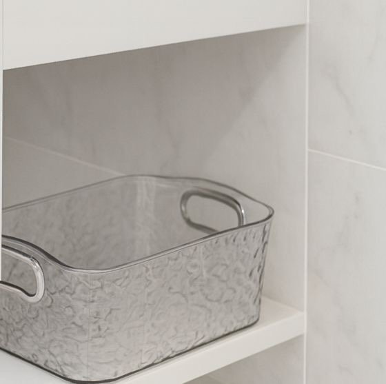 Ideal para organizar cremas, perfumes, cosméticos, toallas pequeñas y accesorios diarios, mantiene todo en su lugar con una estética moderna y elegante que combina perfectamente con el resto de la línea.