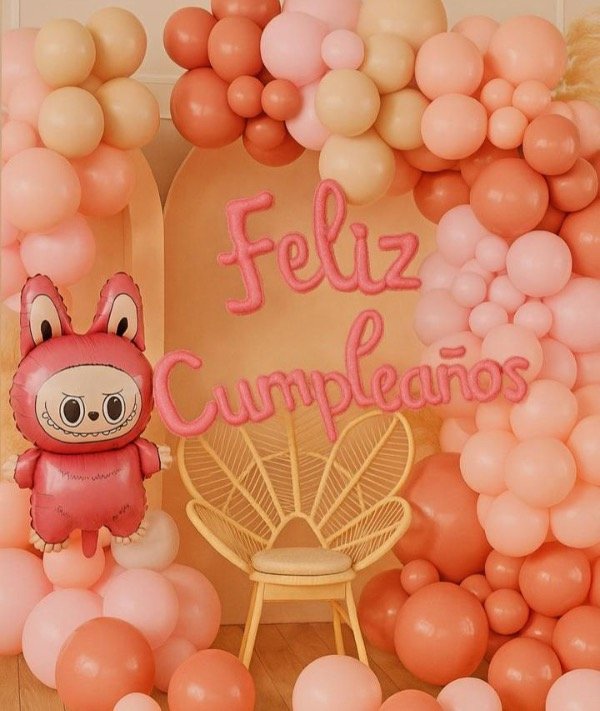 Incluye globos, globo del cartel de feliz cumpleaños y globo labubu.