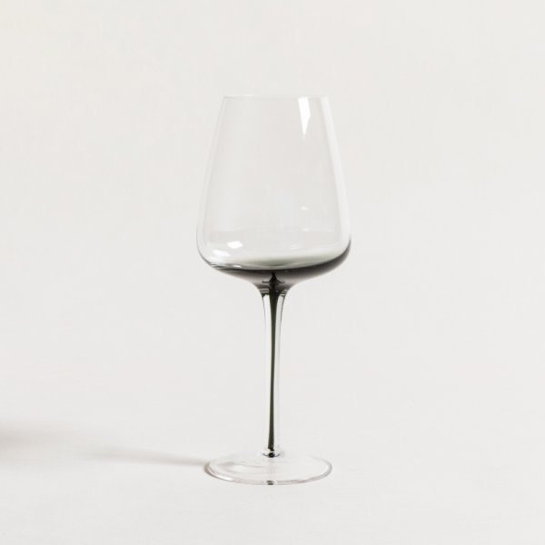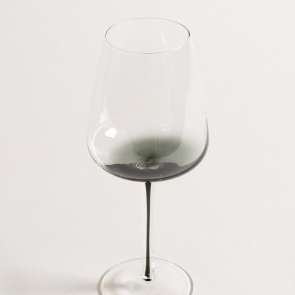 Copa hecha en vidrio con detalle de fondo y tallo negro.