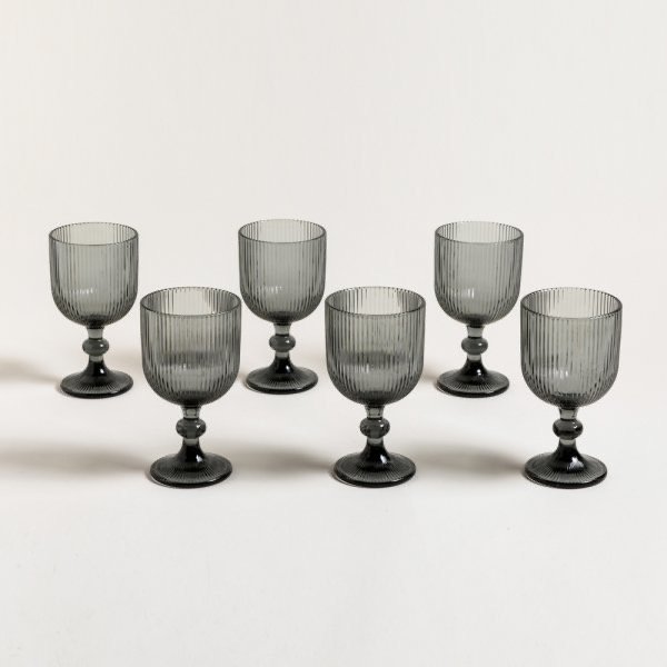 Diseño sofisticado y de vanguardia en color fume, ideales para vestir una mesa de estilo moderno.