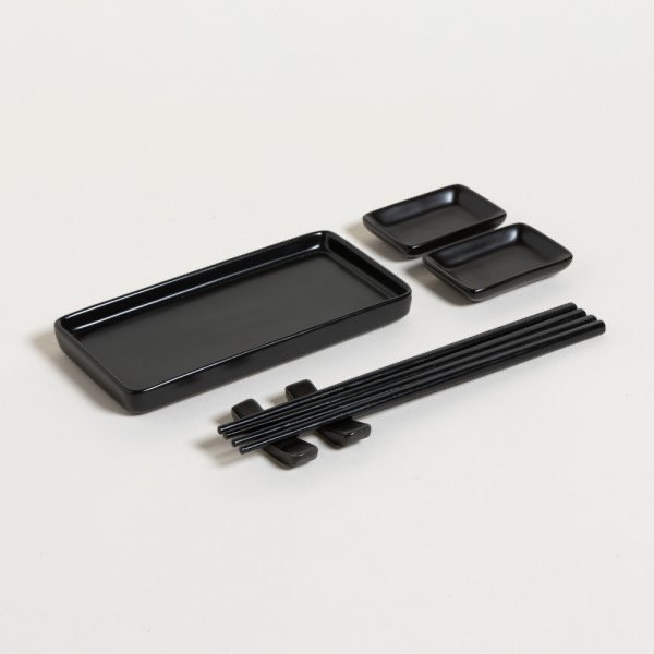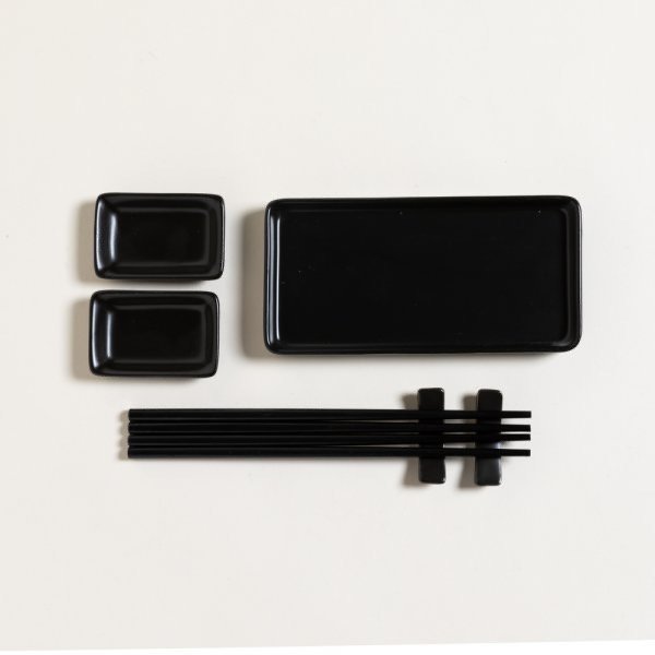 Set de sushi para 2 comensales, de porcelana negra.