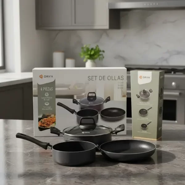 Descubre la eficiencia en tu cocina con este Set de Ollas y Sartenes ORYX de 4 piezas.