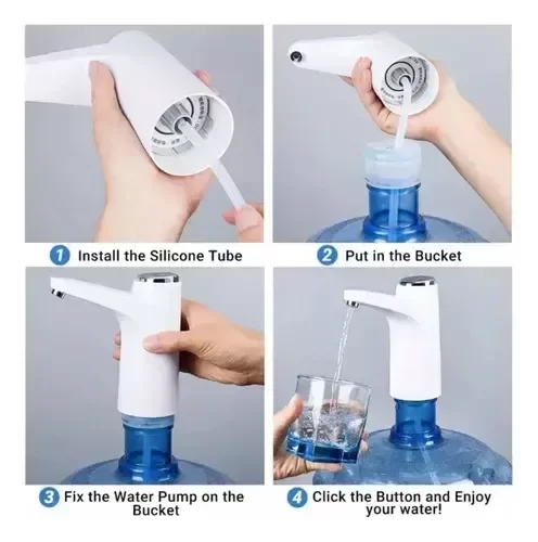 La fuente de alimentación recargable incorporada proporciona un uso prolongado y 8-10 botellas de bombeo de agua.