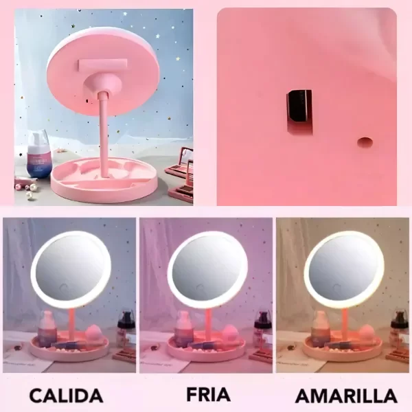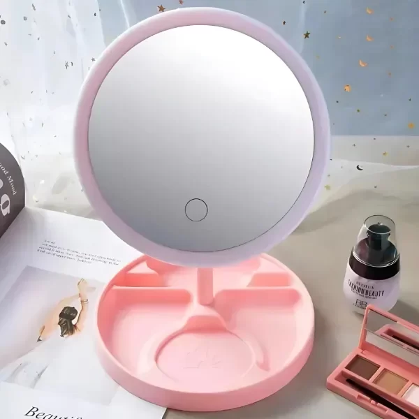 Transforma tu rutina de maquillaje con el Espejo con Luz y Bandeja Porta Maquillaje. Este innovador espejo no solo es un objeto de belleza, sino una herramienta esencial para realzar tu estilo diario.