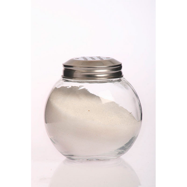 Quesera/azucarera de vidrio con tapa de acero a rosca.