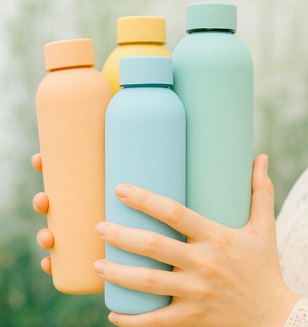 Botella de acero con exterior siliconado, para un agarre cómodo, suave y seguro.