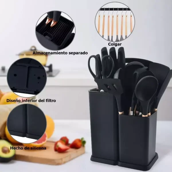 La versatilidad de este set lo convierte en el aliado perfecto para cualquier receta, desde la más sencilla hasta la más elaborada. Los utensilios son resistentes al calor, lo que permite su uso en diversas técnicas de cocción sin preocuparse por el deterioro. Además, su diseño elegante y funcional se adapta a cualquier estilo de cocina, añadiendo un toque de sofisticación a tu espacio.