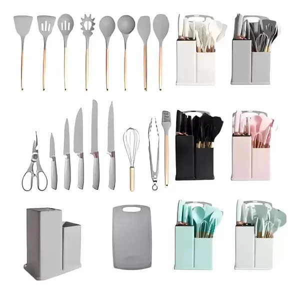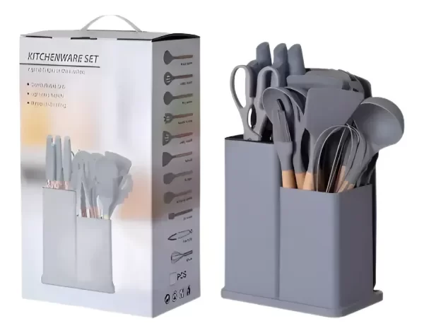 Transforma tu experiencia culinaria con el Set de 19 Utensilios de Cocina de Kitchenware. Este conjunto está diseñado para satisfacer las necesidades de los amantes de la cocina, ofreciendo una variedad de herramientas esenciales que facilitan la preparación de tus platillos favoritos. Cada utensilio cuenta con un mango de madera ergonómico que proporciona un agarre cómodo y seguro, mientras que la punta de silicona es ideal para proteger tus ollas y sartenes de rayones.
