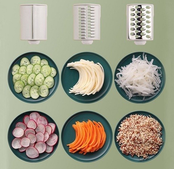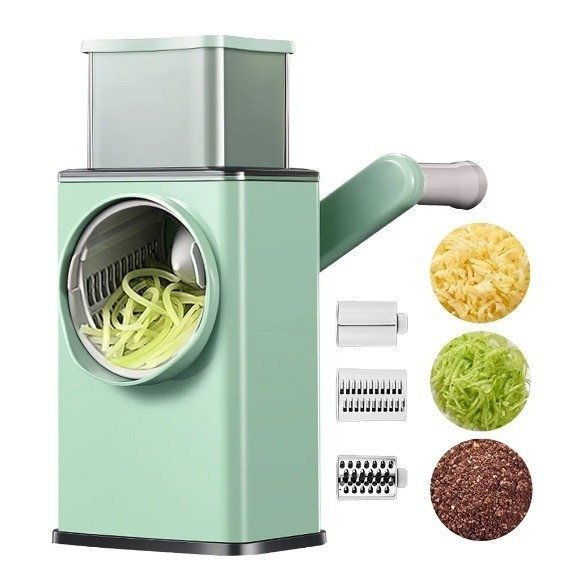 Rebanador de verduras Manual 3 en 1, cortador redondo multifunción, triturador de ajo y patata, rallador, herramienta de cocina para verduras. Cortador de verduras multifuncional 3 en 1: Equipado con 1 cuchilla de corte, 1 cuchilla de trituración y 1 hoja de molienda, que satisface sus diversas necesidades de cocina. Conducto alimentador 40% más grande: Puede acomodar ingredientes de tamaño más grande, perfectos para cortar pepinos, zanahorias, patatas, cebollas, queso, almendras y más para hacer deliciosas ensaladas, sopas, pizzas, postres, etc.