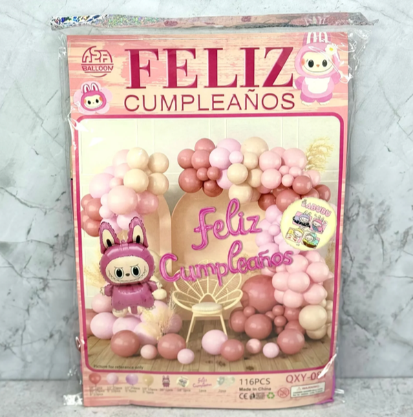 Incluye globos, globo del cartel de feliz cumpleaños y globo labubu.