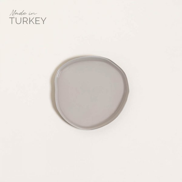 Plato de vidrio de forma irregular, color beige por dentro y negro por fuera.