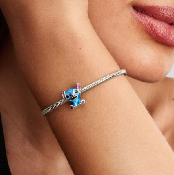 Celebra la magia de Disney con el charm de Stitch creado en plata de primera ley y esmalte en colores azul y celeste.