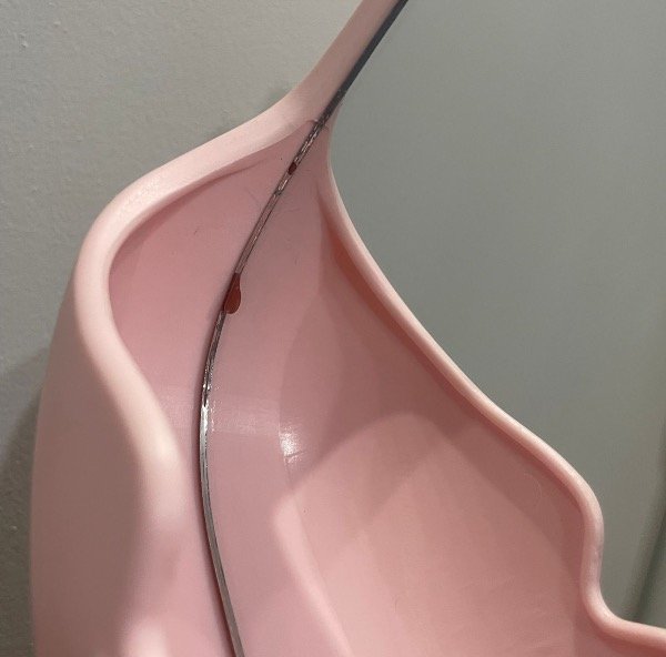 . espejo con diseño de orejitas y espacio de guardado en su base
