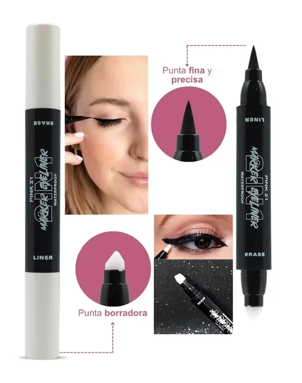 Delineador de ojos con borra tinta Pink 21, ideal para darle los últimos detalles a tu make up