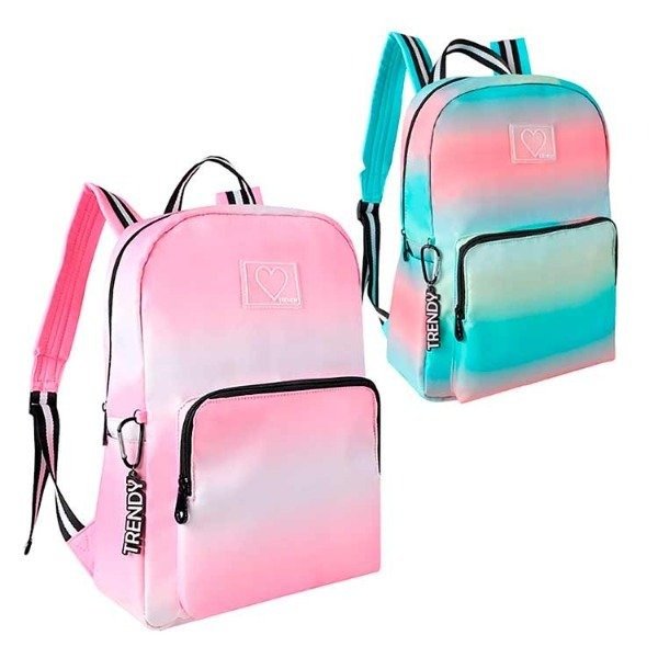 Mochila Trendy, material 100% poliéster, dimensiones (alto x ancho X produndidad) 38 X 28 X 11 cm.